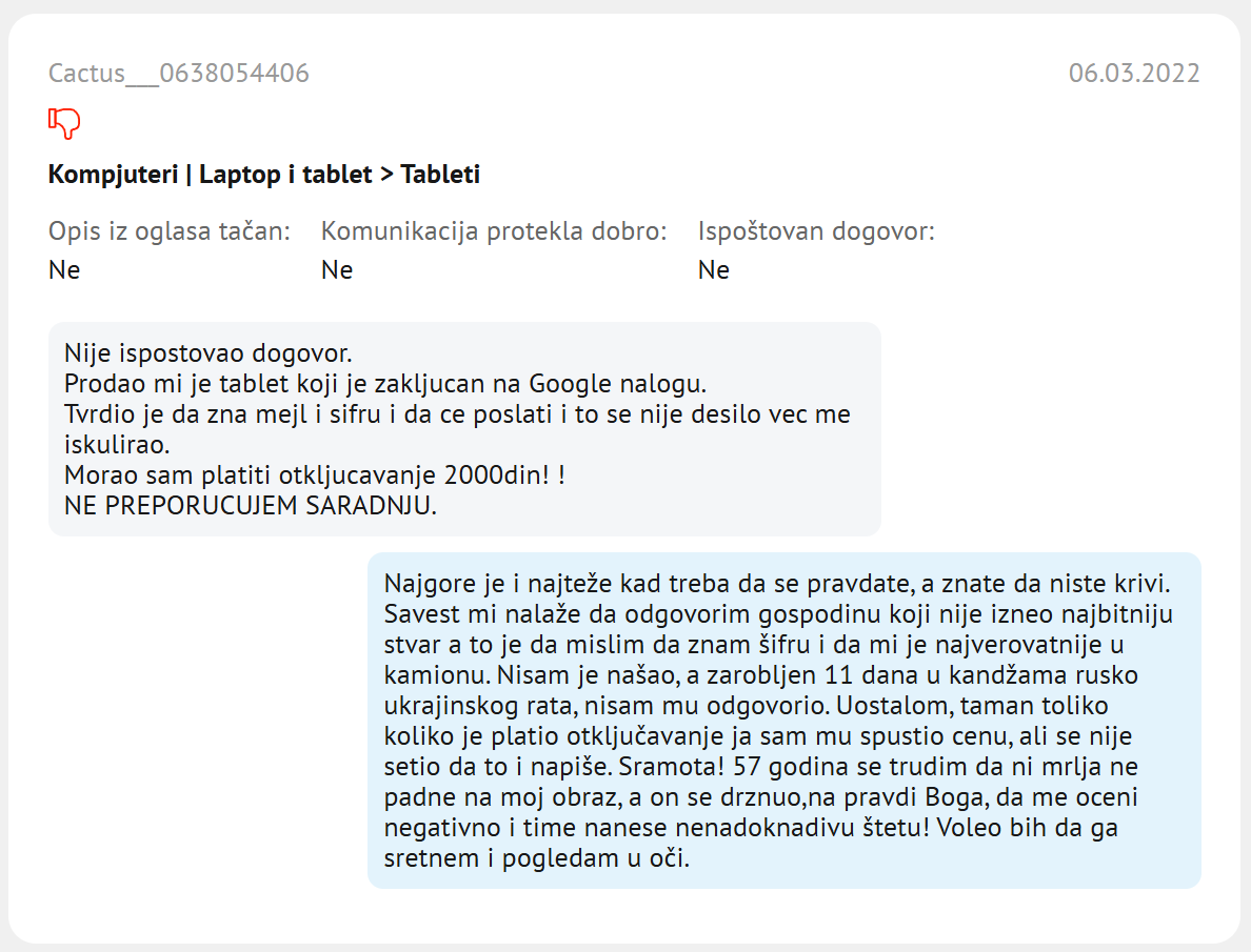 Ovo nije oglas, već ocena saradnje na kupujemprodajem.