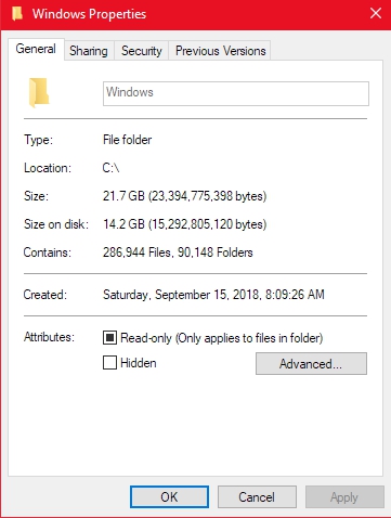 Ovo što si napisao nije tačno. Evo kod mene Windows 10 Pro, legalan sa svim apdejtovima uključenim. Instaliran u oktobru 2019. i od tada ni Temp folder nisam očistio. Na današnji dan, 07. april 2020. godine u 23:04, Windows folder zauzima ukupno 22GB.
