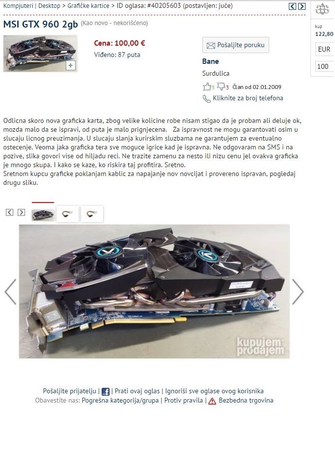 Juce sam sticajem okolnosti ubo rx 580 8gb za 250 evra otisao odmah kod coveka kupio i malo je sredio slikao stavio na oglas ode za par sati za 390 eura. Ali bukvalno sam potrefio trenutak kada je covek okacio oglas, i dok sam ga zvao bio je vec nedostupan, ugrabio sam je samo zato sto sam licno otisao po nju i sto se sve odigralo u pola sata inace da sam bio iz drugog grada nista od toga ne bi bilo. Prvi koji je mogo da dodje da je kupi posle mene je bio neki lik ali tek za tri sata.