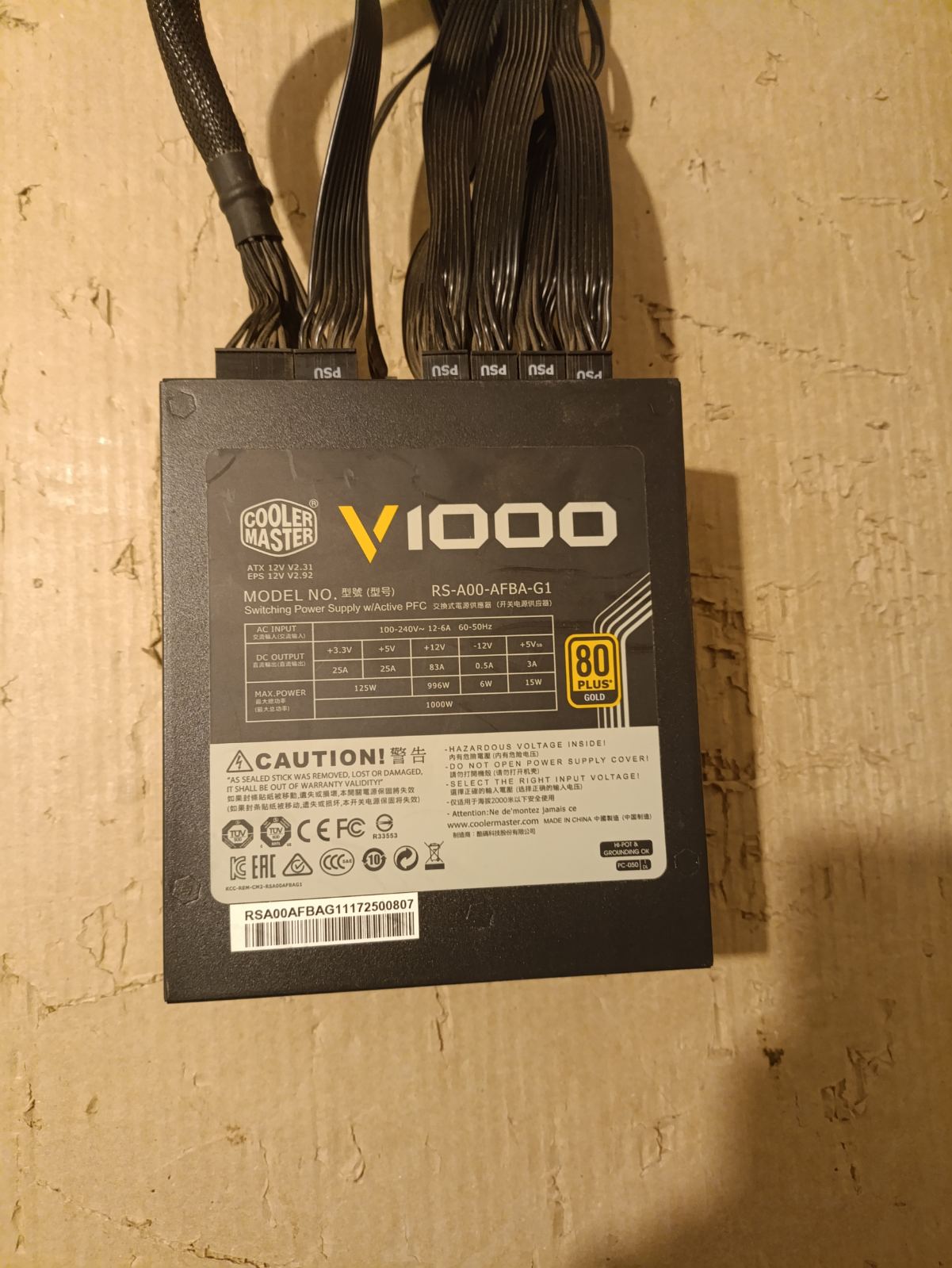Cooler Master V1000 Gold ima sve kablove osim jednog osmopinca(2x4) za cpu,inace poseduje 2 takva.---- 6500din